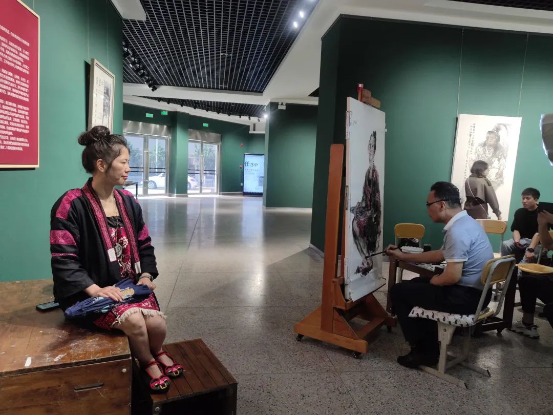任惠中教授在进行少数民族女青年水墨人物写生示范时,谈到:“写生时,要抓住人物的形、神。捕捉人物神态,更深层次的是要做到界定人物身份,去表现出不同时代,不同地区的人所不同的精神面貌,这样留在画面中的人物形象深度、笔墨趣味、精神气质等都会不同,因此也就会产生面貌多样的人物画作