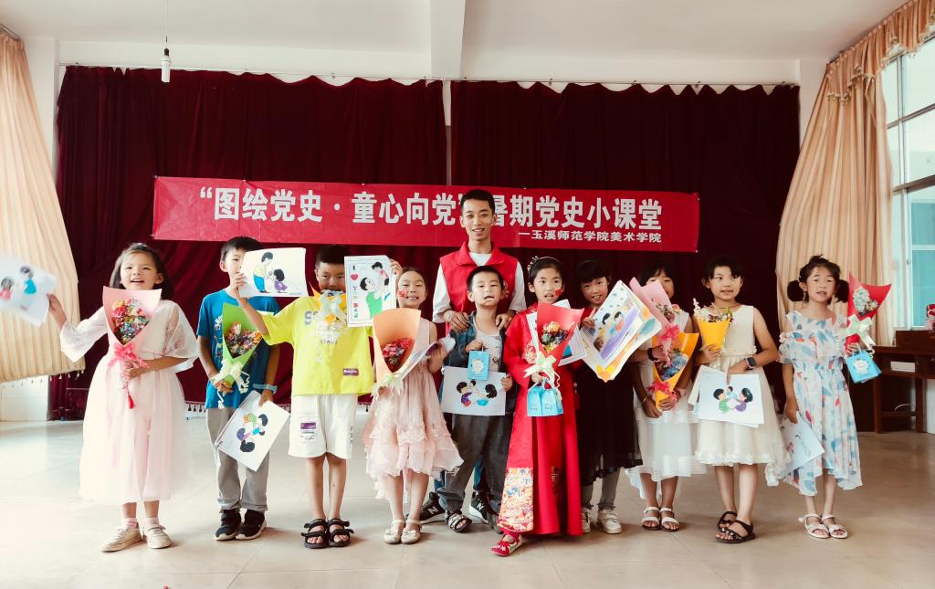 2021年7月,张凯组织参加了美术学院“三下乡”暑期社会实践活动,带领“粉刷匠”乡村振兴实践团到玉溪市红塔区灵秀村完成墙绘任务、从美术的角度对当地儿童进行爱国主义教育和党史教育,录制的视频在中国青年网得到报道。张凯用行动证明着青春的意义,用善意诉说着艺术的厚重。