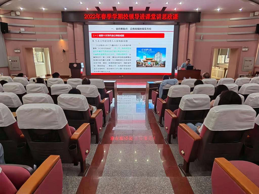 为深入学习宣传贯彻习近平新时代中国特色社会主义思想,开展好思想政治教育,6月1日下午,校党委委员、副校长李明走进课堂为美术学院、外国语学院的师生讲授“学习贯彻党的十九届六中全会精神 认真落实云南未来五年发展目标”思政课,美术学院、外国语学院的师生党员、入党积极分子及团学干部200余人聆听了讲座。