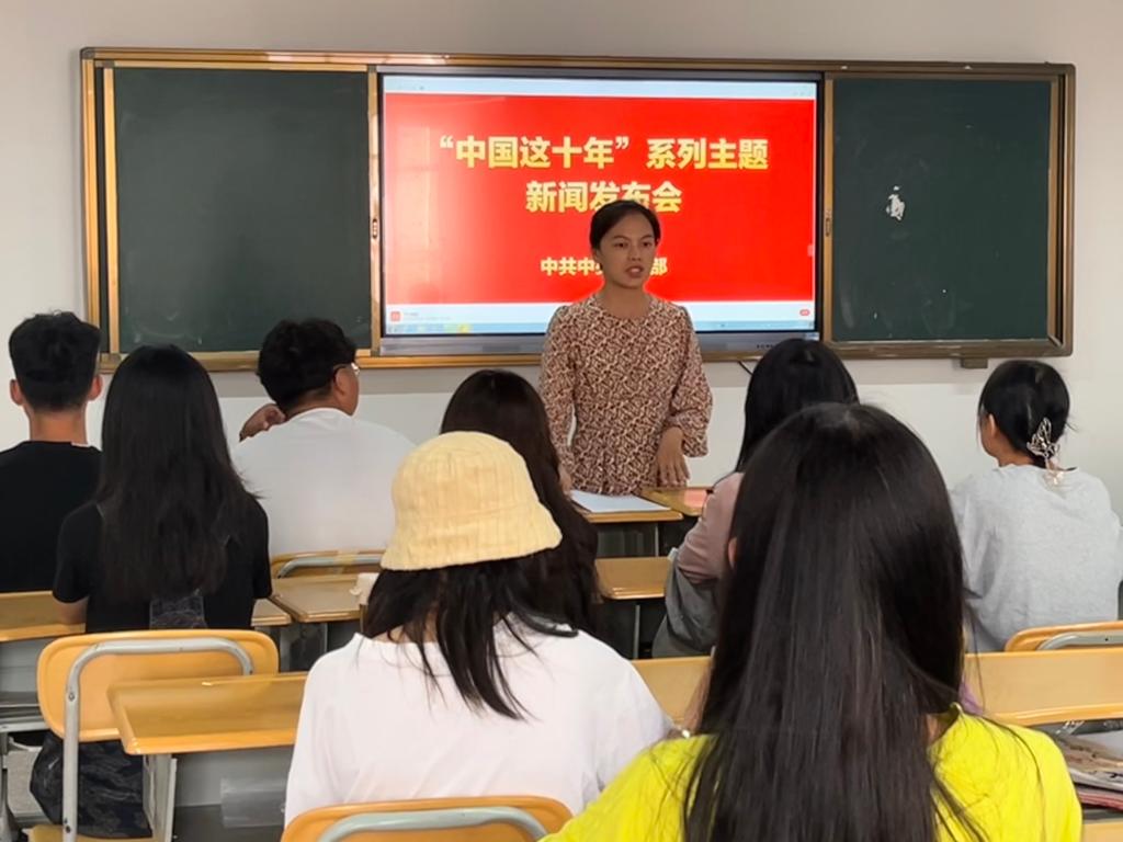 杨娟给大家讲述了中国这十年的巨大变化,中国共产党团结带领中国人民,自信自强、守正创新,统揽伟大斗争、伟大工程、伟大事业、伟大梦想,创造了新时代中国特色社会主义的伟大成就。人民生活发生翻天覆地的变化,国家经济实力、科技实力、综合国力跃上新台阶,美丽中国建设迈出重大步伐,看到中国力度、中国深度、中国速度中国坚定不移走和平发展道路,致力于通过自身发展维护和促进世界和平。中国充分意识到自己对全球和平、发展、安全的国际责任,致力于履行其在维护联合国权威、践行多边主义和包容开放等方面的国际职责。
