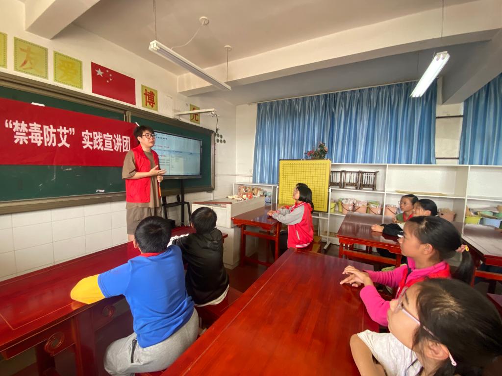 毒品和艾滋病严重摧残人类健康、威胁人类安全。针对青少年的心理、生理和认知特点,重点面向实践服务地青少年广泛宣传禁毒防艾知识和相关法律法规,进一步增强青少年群体的自我防护意识,让青少年识毒明毒,拒绝毒品,远离艾滋。美术学院志愿者在葫泉社区进行禁毒防艾知识的宣讲。