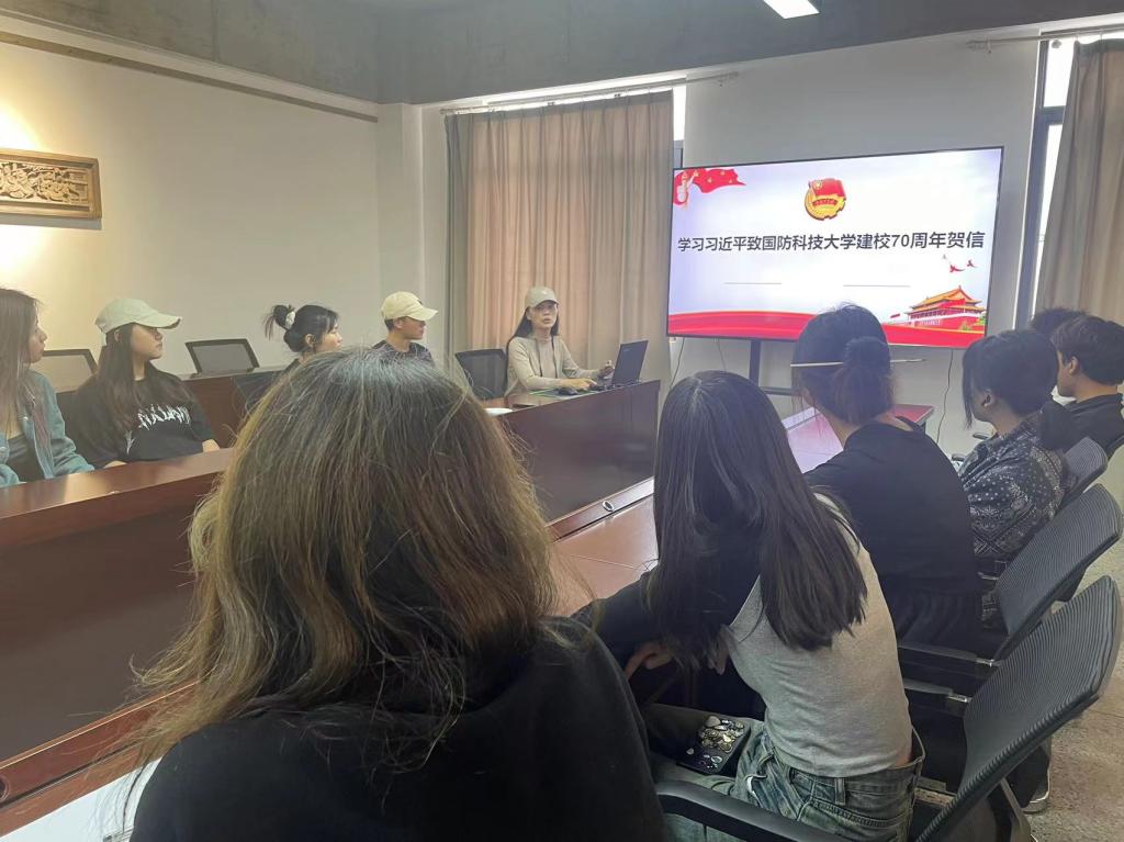 美术学院团委书记杨娟,结合历史讲解了国防的重要性,带领大家学习了习近平致国防科技大学建校70周年贺信精神和习近平给安徽省潜山野寨中学新考取军校的同学们的回信精神。最后又着重强调唯有持之以恒,始终着眼强化全民的国家意识、国防意识和忧患意识,营造出全社会关心国防、支持国防、建设国防的浓厚氛围,不断为强国兴军凝聚强大正能量。