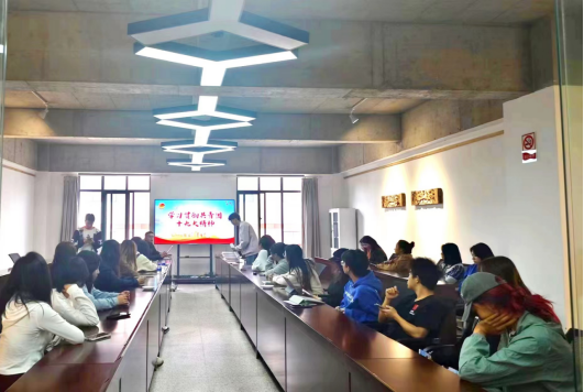 团委副书记杨昇结合时代发展趋势需要,结合社会主义现代化建设需要,伫立于历史发展新起点,通过共青团十九大精神,强化对青年学生的思想引领,提高学生干部的理论素养、工作能力和实践能力。