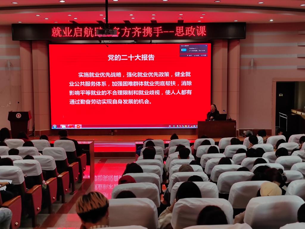 杨丽珍书记对党的二十大报告中指出实施就业优先战略,强化就业优先政策,健全就业公共服务体系,加强困难群体就业兜底帮扶做了深入的解读。强调没有天生人生赢家,只有不畏艰辛的人们,积极鼓励同学们在就业的道路上要砥砺前行,先就业再择业,教导毕业生要勇于面对社会,抓住就业机会,学会在社会中生存。不忘党的培养,党的教导,在求职中不忘初心,脚踏实地,做好自己应该尽的责任。