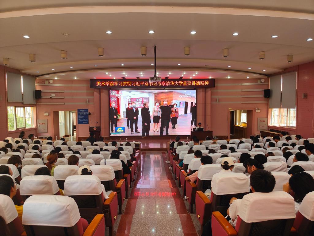 会上,师生们集体观看了《新闻联播》相关视频。党委书记杨丽珍传达了习近平总书记考察清华大学重要讲话精神,希望全院师生切实将讲话精神,特别是习近平总书记对美术教育事业的关心和对青年的期望,转化为努力学习和推动美术教育事业发展的动力。