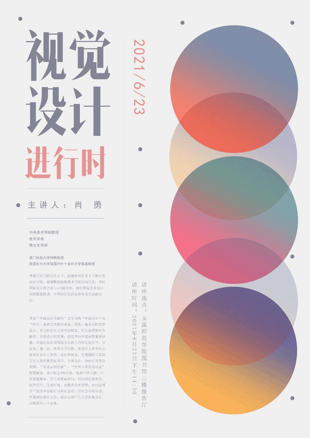 下午2:30,肖勇教授在玉溪师范学院图书馆进行了主题为“视觉设计进行时”的讲座。