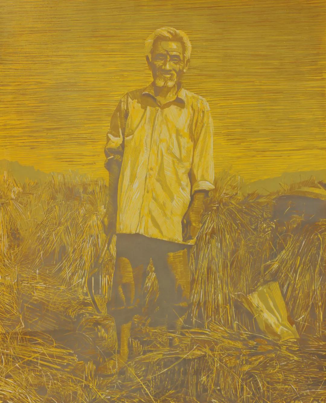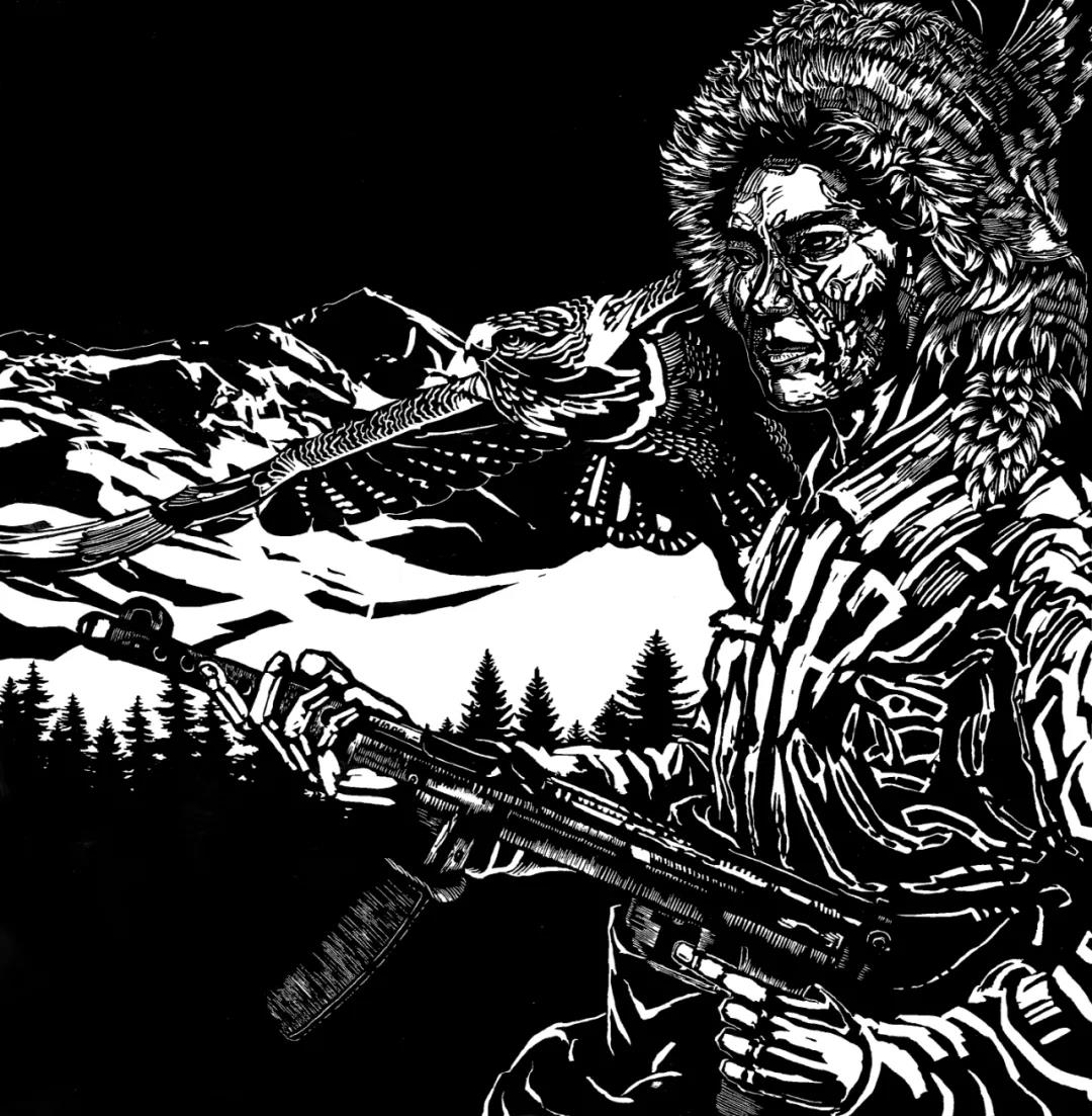 版画《雪山雄鹰——七林旺丹》 李宏斌 79cmX77cm