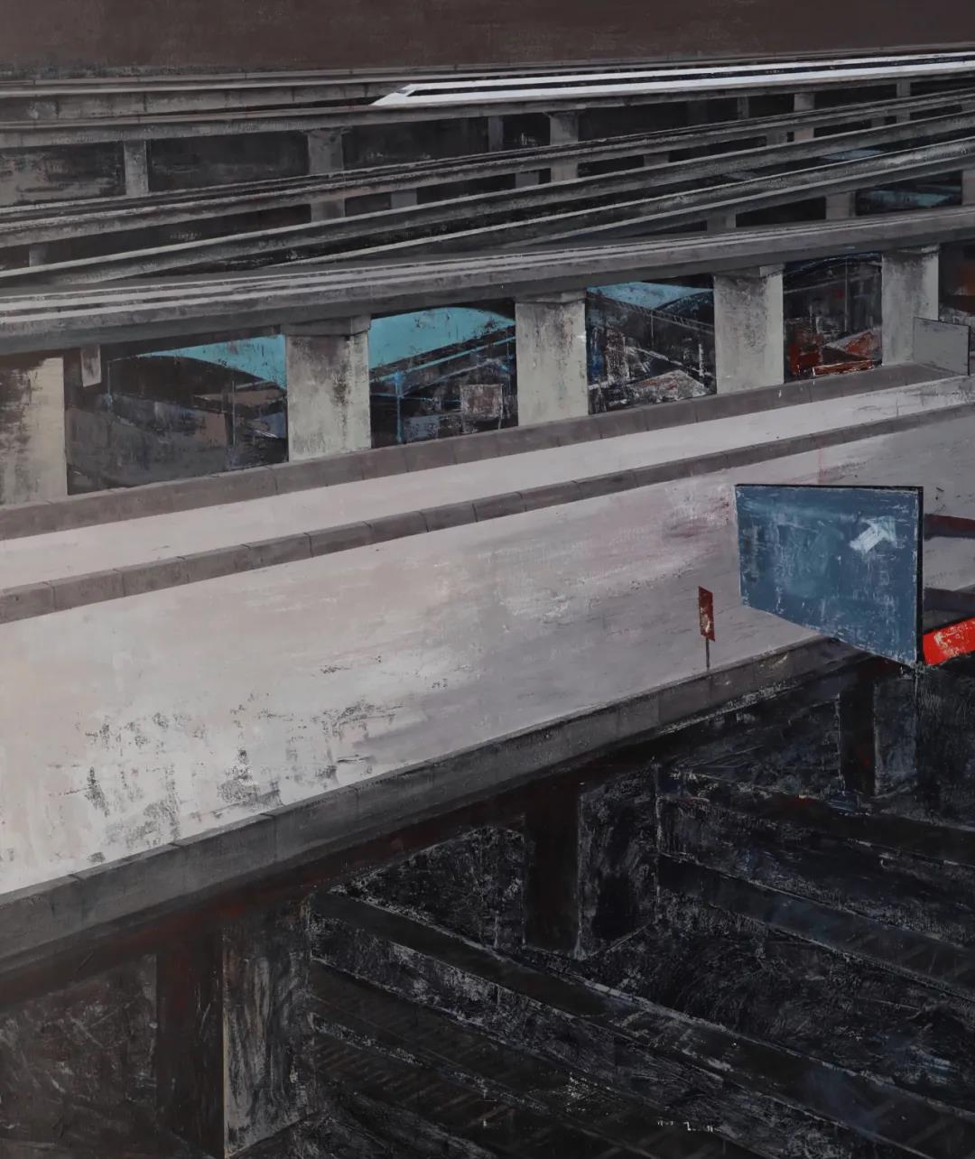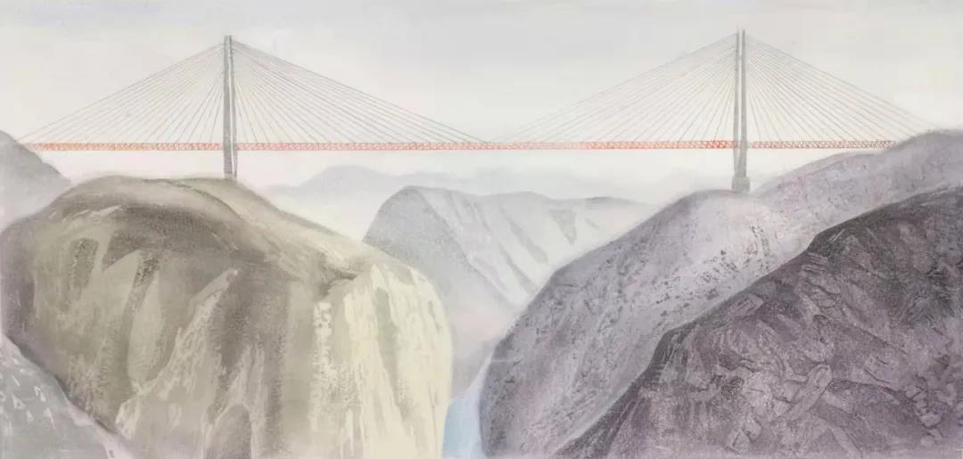 版画《超级工程之北盘江大桥》 吴婉希 109cm×55.5cm