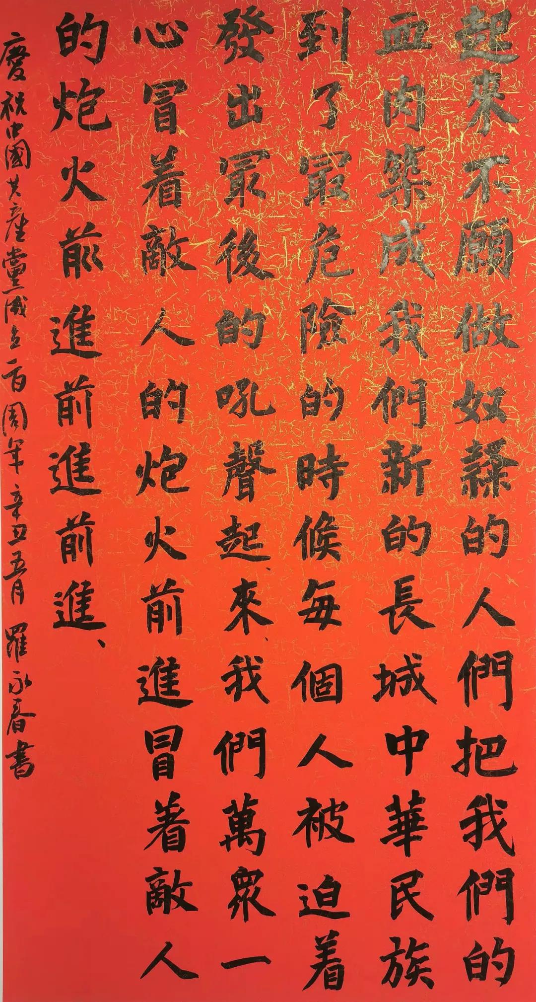 楷书《义勇军进行曲》 罗永春 90cmX180cm