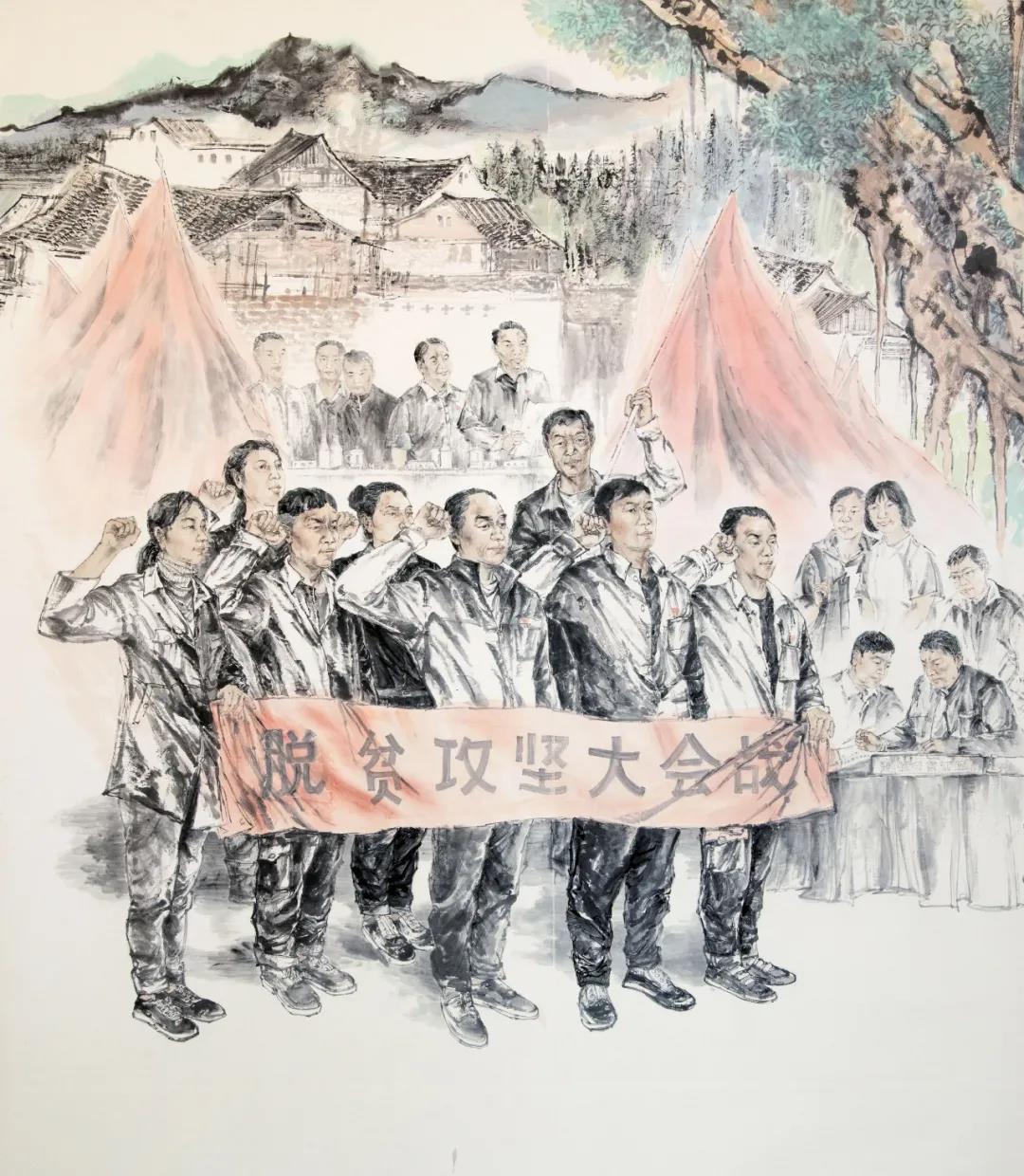 中国画《云岭脱贫——决战号角》 杨应清 350cmX300cm