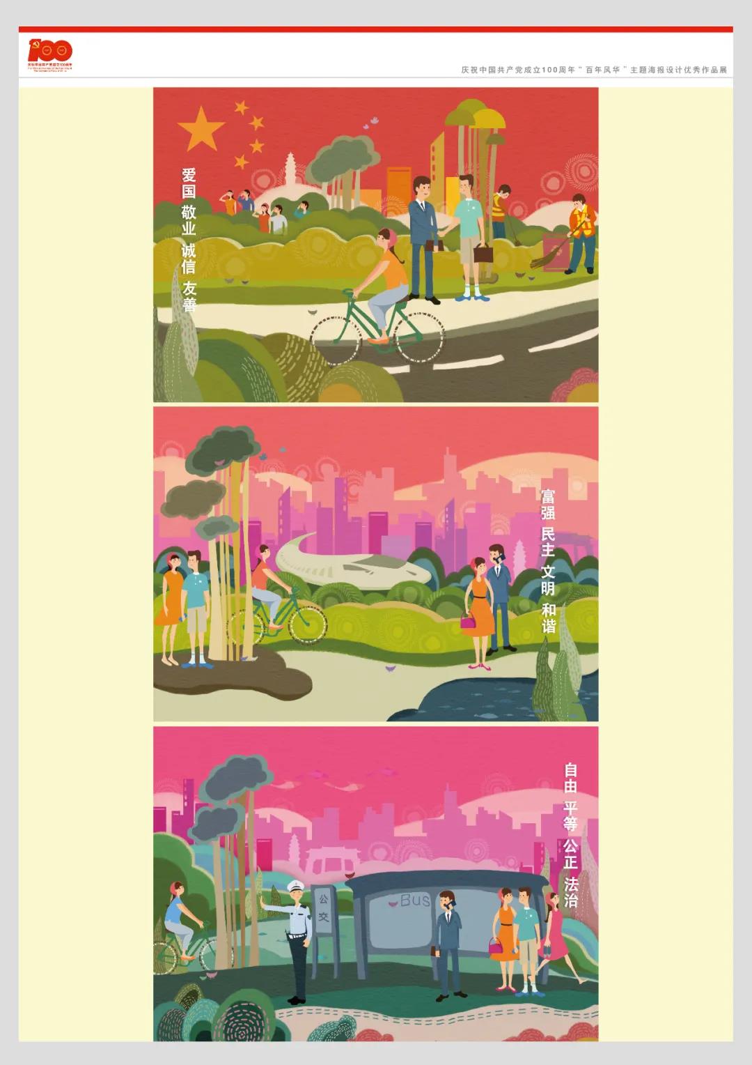 美术学院师生“庆祝建党100周年”主题创作涵盖了美术、书法、艺术设计。创作从新民主主义革命时期、社会主义革命和建设时期、改革开放和社会主义现代化建设时期、中国特色社会主义新时代四个时期汲取滋养,激发灵感,作品内容丰富,形式多样,表达着师生不忘初心,永远跟党走的坚定信念。