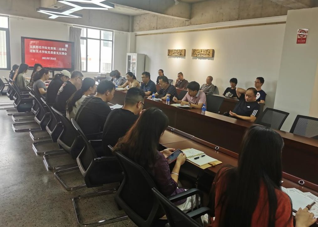 7月5日下午3点,学校党委第二巡察组在美术学院三楼会议室召开巡察工作反馈会。学校党委巡察办主任彭松、第二巡察组组长邵源诚、副组长董丽波、张建光及工作人员杨艳出席会议,美术学院全体教职员工参加了本次会议。会议由美术学院党委副书记、院长郭巍主持。