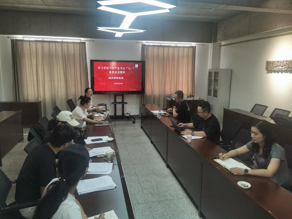 7月13日上午,美术学院党委理论学习中心组在学院三楼会议室召开专题会议,认真学习习近平总书记在庆祝中国共产党成立100周年大会重要讲话精神。美术学院领导班子成员、院长助理参加会议,党委书记杨丽珍主持会议。