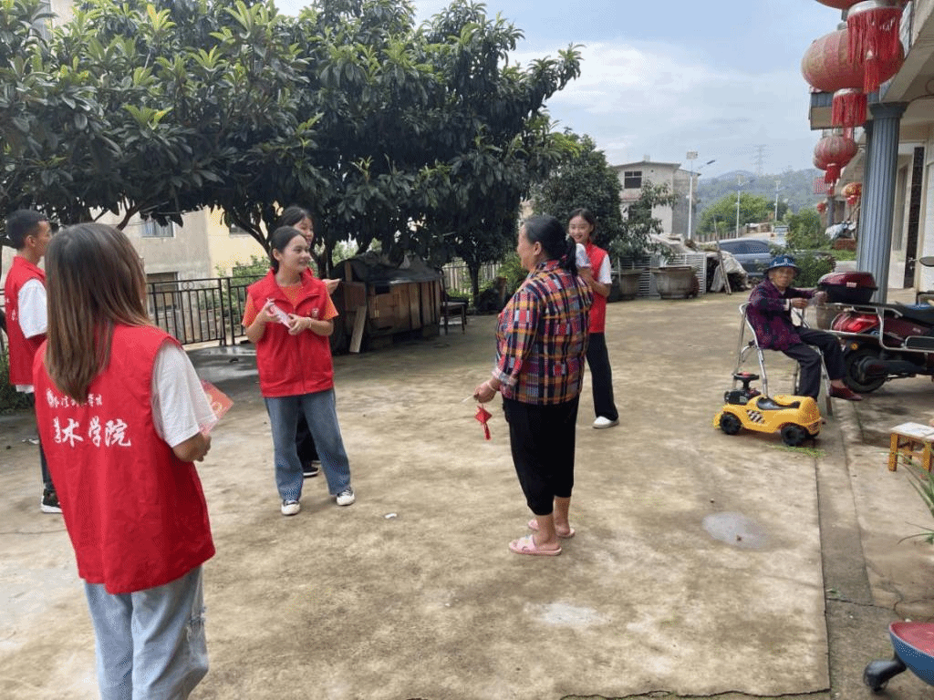 走访调研 了解民情:实践队员积极与村民进行沟通交流,并组成调研小组,通过线上+线下的方式,调查了解村民对乡村振兴、居住环境、当地教育等方面的意见建议。调研中队员们向村民发放了自制明信片,收集大家对本次社会实践活动的建议,进一步明确服务乡村的方向和奋斗目标。