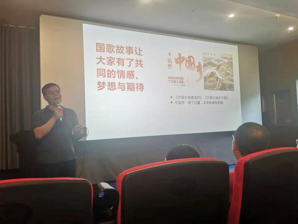 时遂营同志以“把聂耳和国歌故事融入党史学习教育”为题,通过多个故事生动讲解了“天边不如身边,道理不如故事”“讲好国歌故事是坚定文化自信之‘魂’”“从聂耳精神中汲取文化自信力量”“如何在党史学习教育中讲好聂耳和国歌故事”等内容,指出聂耳为党奋斗的信念是学史明理的鲜活素材,讲好聂耳和国歌故事的落脚点是学史力行,相信大家一定用聂耳精神滋养初心、淬炼灵魂,通过艺术的方式讲好聂耳和国歌的故事,弘扬聂耳精神。