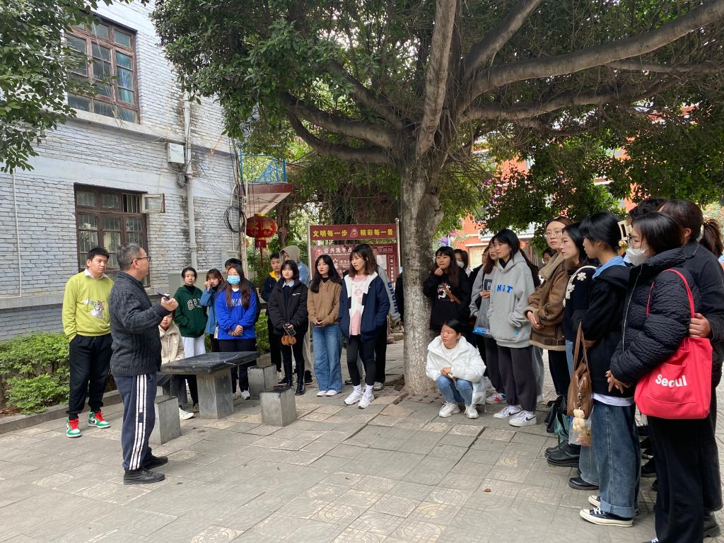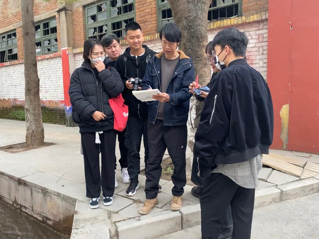 在绿汁镇期间,三个专业的师生对选矿厂、机修厂、电影院、苏联专家楼、矿务局医院、乡愁书院等区域进行了现场调研,对绿汁铜矿老矿工、白沙村虎掌舞非遗传承人、绿汁镇政府工作人员做了访谈。调研期间,环境设计专业师生结合绿汁镇“滇铜古镇”旅游策划内容,对所涉及的景观改造、特色村落、乡村振兴示范点、人居环境改造等情况进行了现场考察;视觉传达设计专业师生对绿汁镇现有的品牌定位、导视系统和信息设计情况进行了分组研讨;数字媒体艺术专业师生主要对绿汁镇和铜矿的地域特色、风土民情、历史文化等进行考察,深入访谈了两位二代老矿工,聆听了矿工与易门铜矿的故事,拍摄了绿汁镇特色风貌、历史街区、铜矿历史和矿工故事素材,为下一步制定包括原创数字影像创作、插画、手办、数字雕塑等项目的方案做准备。