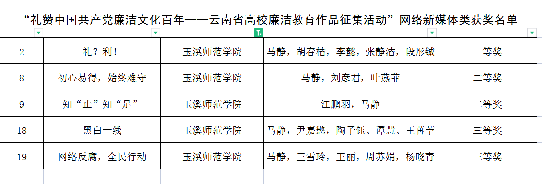 据悉,“礼赞中国共产党廉洁文化百年——云南省高校廉洁教育作品征集活动”评选,经学校推荐、专家遴选,评选出优秀论文66篇,廉洁教育优秀作品表演艺术类15项、书画摄影类80项、艺术设计类35项、网络新媒体类20项。