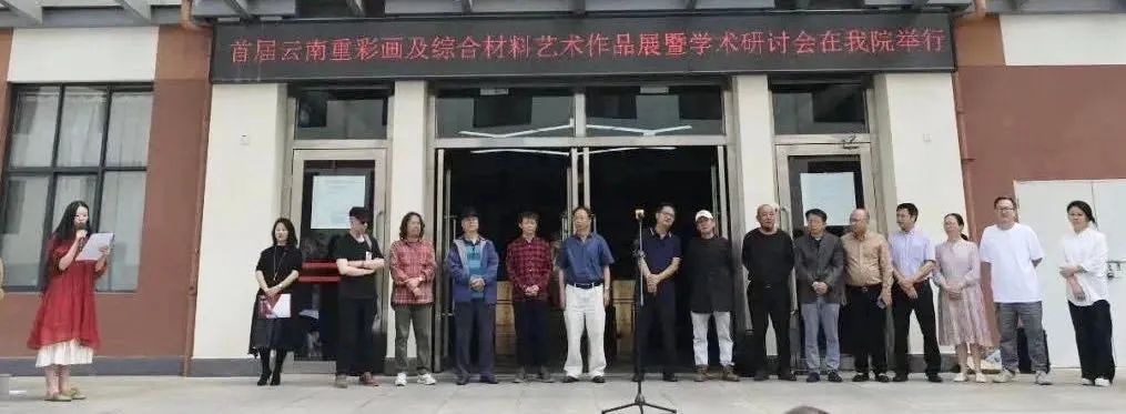 展览由云南省美术家协会与玉溪师范学院共同主办,玉溪师范学院校长马力教授、副校长李明教授、科学技术处处长李涛教授、美术学院党委书记杨丽珍老师、院长郭巍教授,以及来自云南省美术家协会及重彩画及综合材料艺术委员会、中国画艺术委员会、理论评论委员会、民族民间美术艺委会、对外交流委员会、水彩艺委会、油画艺委会、平面设计艺委会、数字媒体艺术艺委会、上海言兑文化发展有限公司、云南岩彩艺术中心的艺术家、艺术评论家,玉溪师范学院、云南艺术学院、云南大学、云南民族大学、西南林业大学、文山学院、红河学院的多位教师,玉溪师范学院美术学院各专业的学生参加了开幕式。