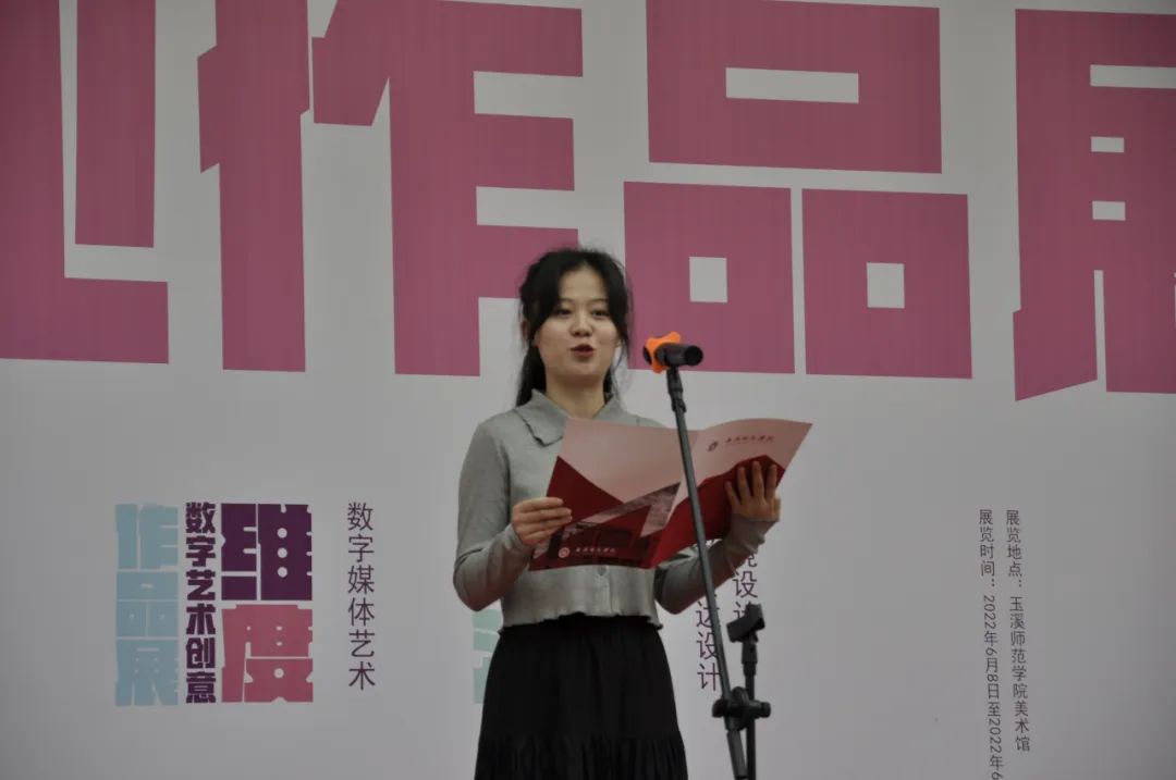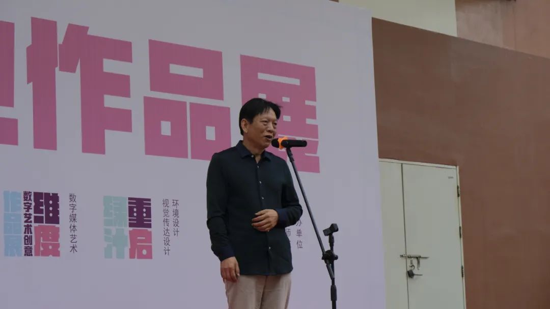 美术学院专门负责整个设计活动的王飚副院长从玉溪师范学院美术学院的发展定位、学科定位以及展览的策划、实施做了致辞和介绍,他谈到此次展览美术类作品遵循“思想精深、艺术精湛、制作精良”的文艺作品方向;设计作品以“设计为翼,重启绿汁”为主题、以 “思政引领,问题导向,教学创新,服务地方”的宗旨为指导,探索 “设计+”跨专业的合作创新,形成综合设计与毕业设计课程的连接,建立为地方服务的专业实践与课程联动模式。