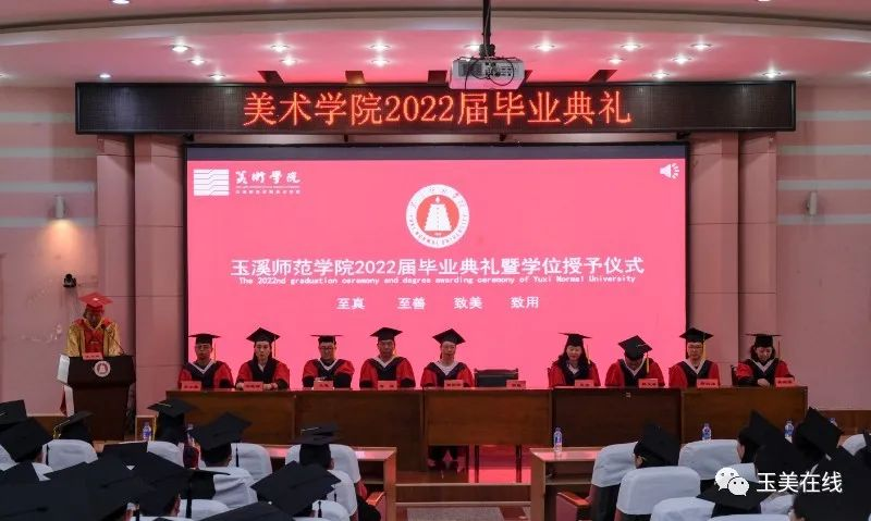 6月14日上午,玉溪师范学院美术学院在科学讲堂隆重举行2022届毕业生毕业典礼暨学位授予仪式。玉溪师范学院美术学院党政领导班子成员、学术委员会成员、专业负责人、辅导员、毕业班班主任、教师代表、2018级毕业生参加仪式。