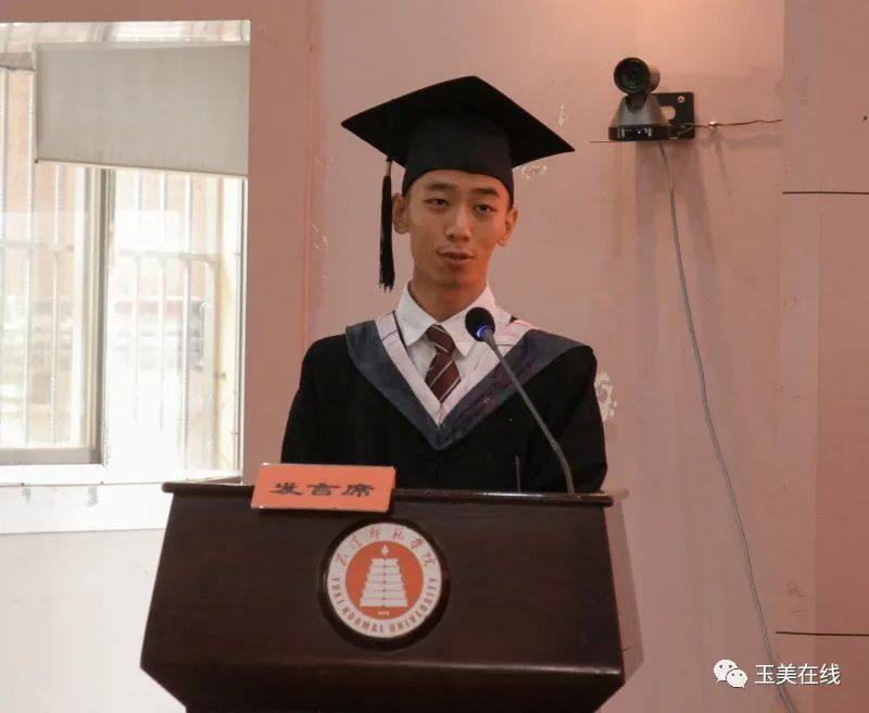 郭巍院长祝贺同学们顺利完成大学学习生活,并对他们的大学生活提出了殷切的希望。蔡金荣老师希望同学们毕业仍然不忘学习、端正态度、保持健康。毕业生代表张凯代表全体毕业生表达了对老师对学校的感恩之心。