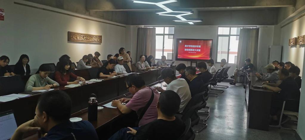 2022年6月29日早上,美术学院召开全院教师大会,观看“张桂梅思政大讲堂”第六讲《爱国的力量——西南联大教育救国的光荣历史》,对学期末工作进行安排,学院全体教师参加,学院院长郭巍主持会议。