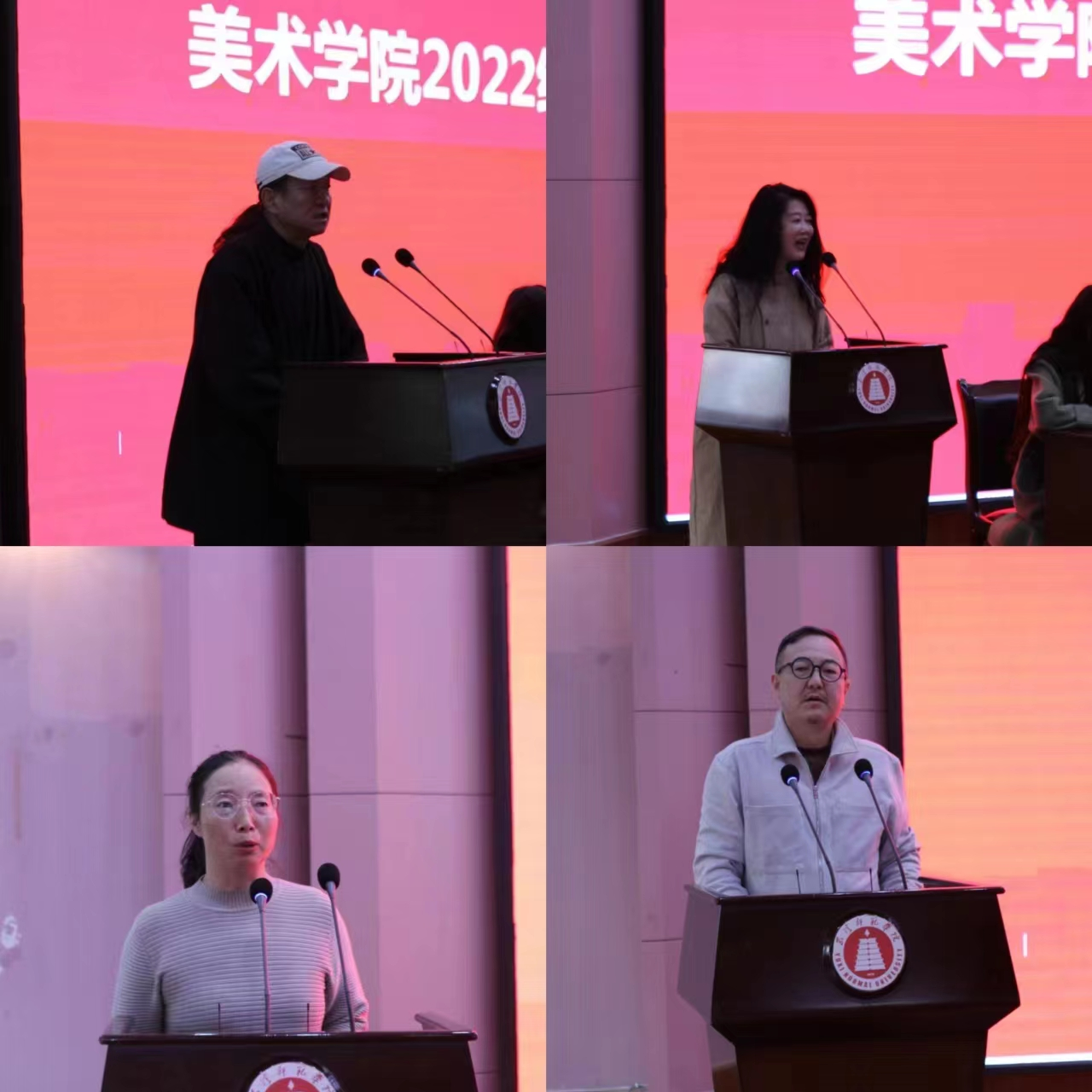 赵芳副院长介绍了美术学院的基本情况,希望同学们充分利用美术学院在学科专业和师资方面的优势,高效使用大学时间,用智慧和双手描绘属于自己的七彩青春。王飚副院长介绍了美术学院的教学管理方面的情况,希望同学们确立新的人生奋斗目标,科学规划大学生学习生涯和职业生涯,成长为知识、能力和素质俱佳的应用型大学生。