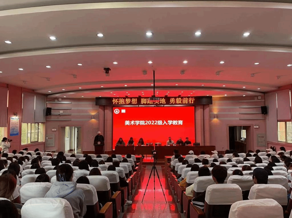 为帮助2022级新生顺利完成从中学到大学的角色适应及转变,在大学生活中最大限度地挖掘自己的潜力和才能,为未来的发展打下坚实的基础, 10月31日,美术学院在科学讲坛举办新生入学教育暨专业介绍大会,美术学院党政领导班子、专业负责人、班主任、辅导员及2022级全体新生参加会议,美术学院党委书记杨丽珍主持会议。