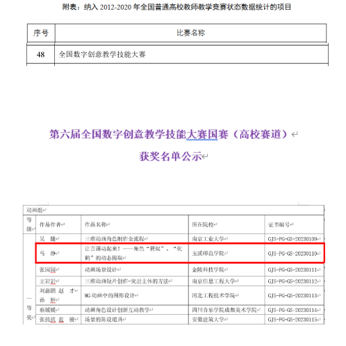 近日,历时四个多月的第六届全国数字创意教学技能大赛全国总决赛落下帷幕,我校美术学院数字媒体艺术专业马静老师的《让古画动起来!——角色“狸奴”“化鹤”的动态提取》课程(证书编号:GJS-PG-GS-20230110)荣获动画组全国总决赛一等奖。