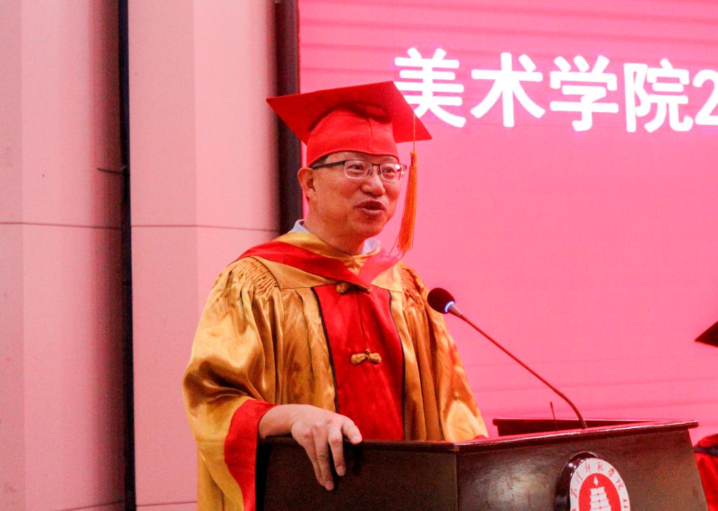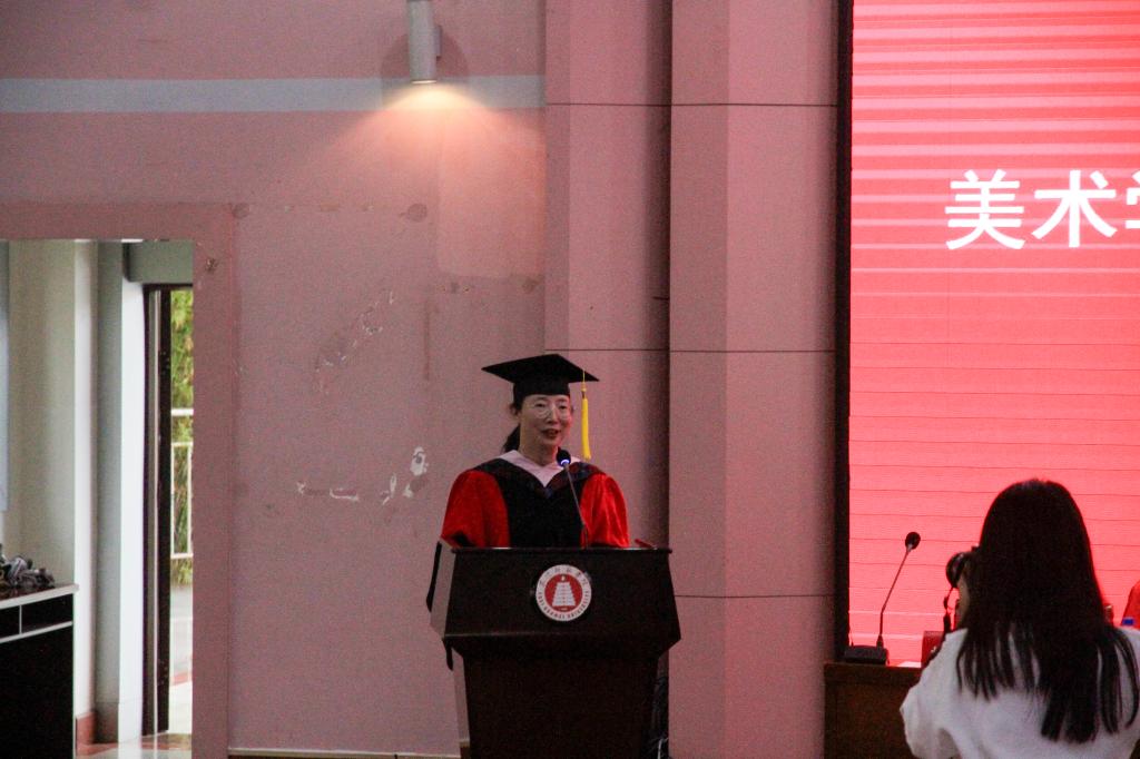 美术学院院长赵芳致辞,希望同学们带着对艺术的执着,志存高远、直面挑战,在艺术的道路上砥砺前行。