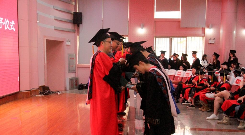 学位授予仪式正式开始,美术学院副院长王飚教授宣读了《美术学院学士学位评定分委员会关于授予234名2023届本科毕业生学士学位的决定》,导师们为毕业生行拨穗礼,颁发毕业证书,并合影留念。