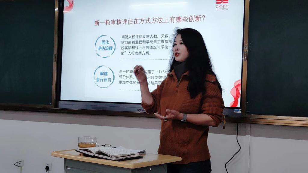 2023年10月11日,玉溪师范学院美术学院“迎接教育部本科教育教学审核评估培训会”在美术学院三楼329教室举行。会议由美术学院赵芳院长主持,对本轮审核评估的要点一一进行解读,美术学院全体教师参加此次培训会议。
