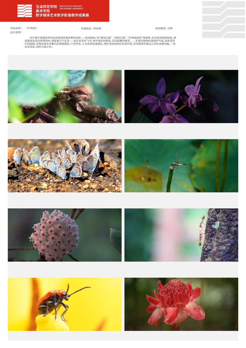 第二单元的作品是云南省课程思政示范课程《专业采风》重要支撑内容。以专业的视角、全新的思维,来宣传、科普COP15大会主题——“生态文明:共建地球生命共同体”。通过数字影像作品,普及云南多物种生物、生态、环境知识,特别是玉溪那诺哈尼族梯田的生态智慧,从而领会习近平总书记关于生态文明思想的丰富科学内涵,引导学生增强保护生物多样性的自觉性和使命感,主动参与到生物多样性的创作当中,用设计专业力量加强生态知识的普惠、分享和共创,推动跨界融合发展。