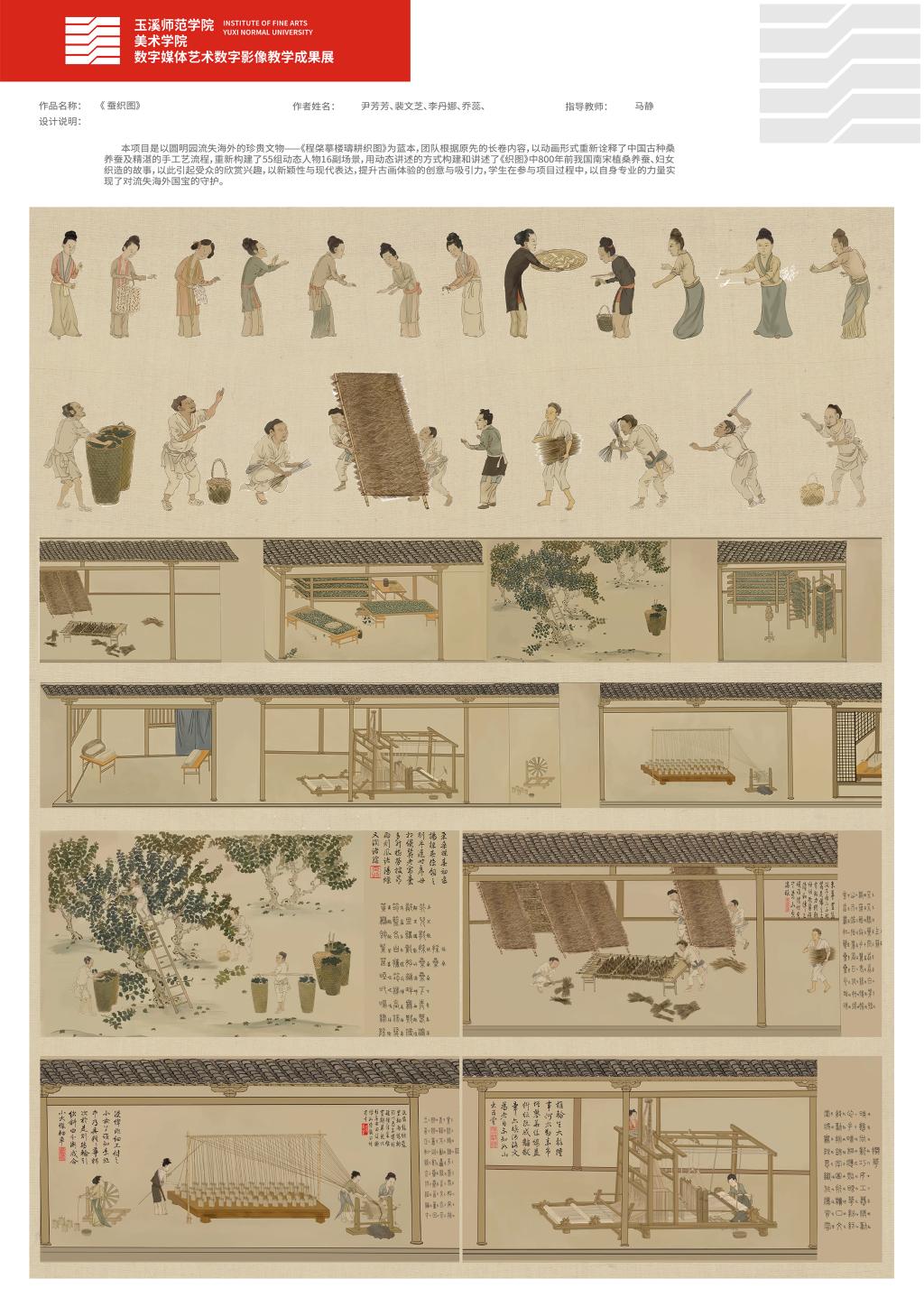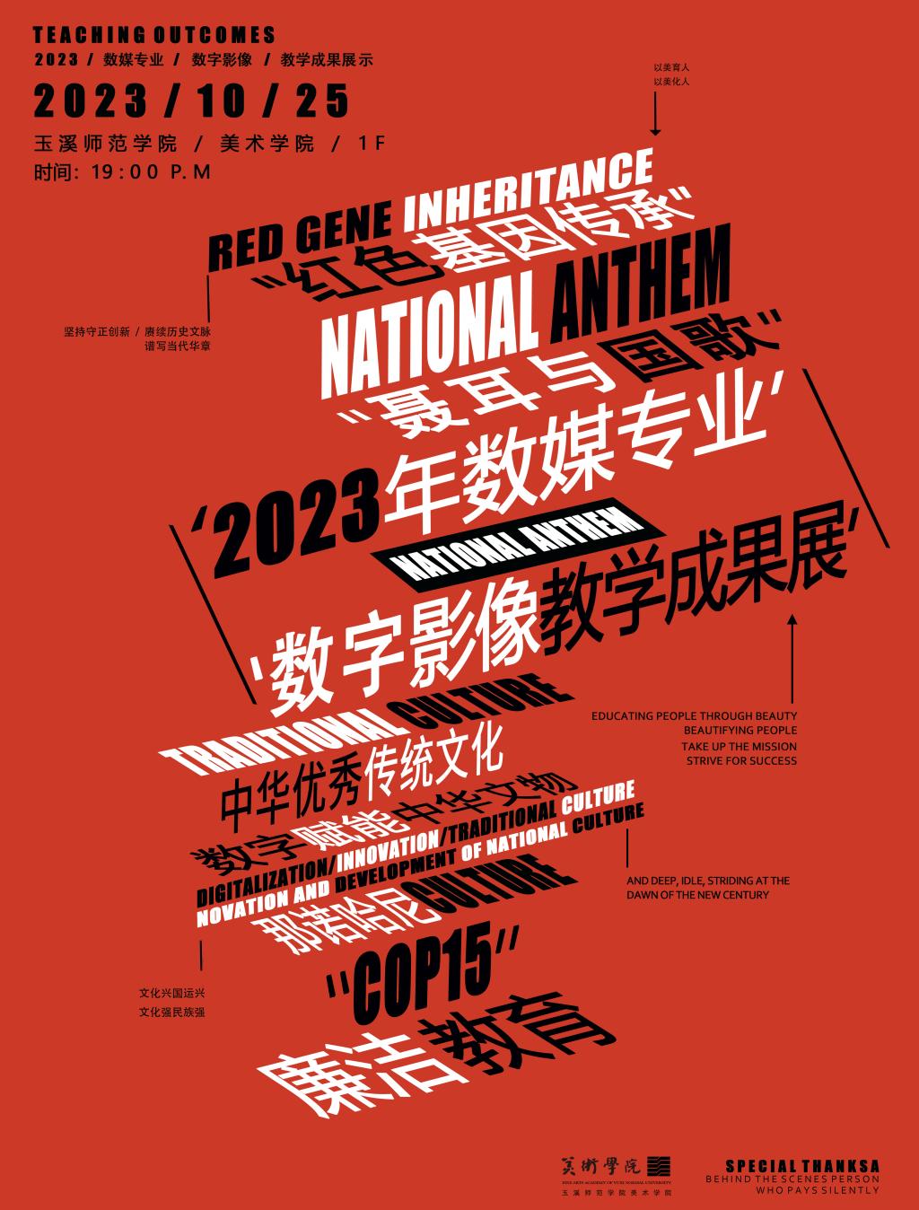 本次展览以“数字赋能中华优秀传统文化 ·COP15·红色基因传承”为主题,将25件微视频、微电影、二维动画、定格动画等主题性数字影像作品,分三个单元展示。本次展览由玉溪师范学院美术学院主办,展出近三年美术学院数字媒体艺术专业等设计专业的教学成果,包括“RoboCom机器人开发者大赛——中国历代绘画大系数字创意赛CAIA竞赛项目”、 中国大学生计算机设计大赛、全国高校数字艺术设计大赛(NCDA)、米兰设计周中国高校设计学科师生优秀作品展、全国大学生广告艺术大赛、大学生网络文化节、高校廉洁教育系列活动等学科竞赛与专业比赛的获奖作品。这些作品中,获得国家级赛事奖项13项、省级赛事奖项36项。
