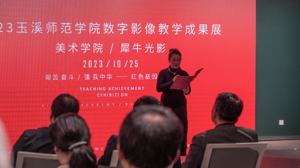 2023年10日25日,2023玉溪师范学院数字影像教学成果展暨美术学院犀牛光影社团“艰苦奋斗,强我中华一一红色基因传承”影像展在玉溪师范学院美术学院美术馆一楼展厅展出。