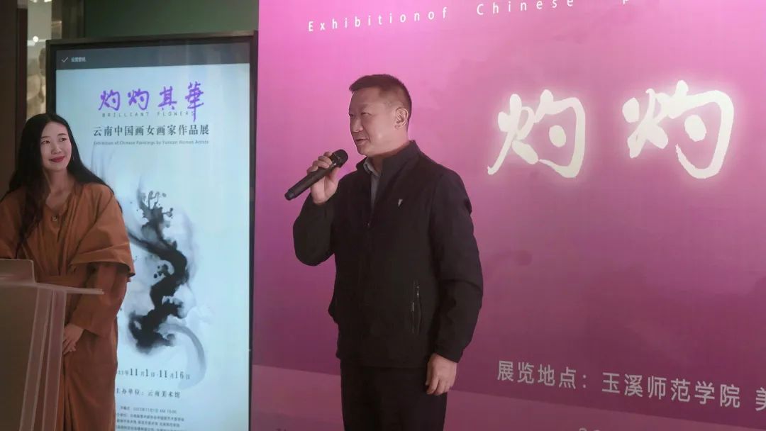 玉溪师范学院党委书记姜家雄先生宣布“灼灼其华”—云南中国画女画家作品展正式开展。