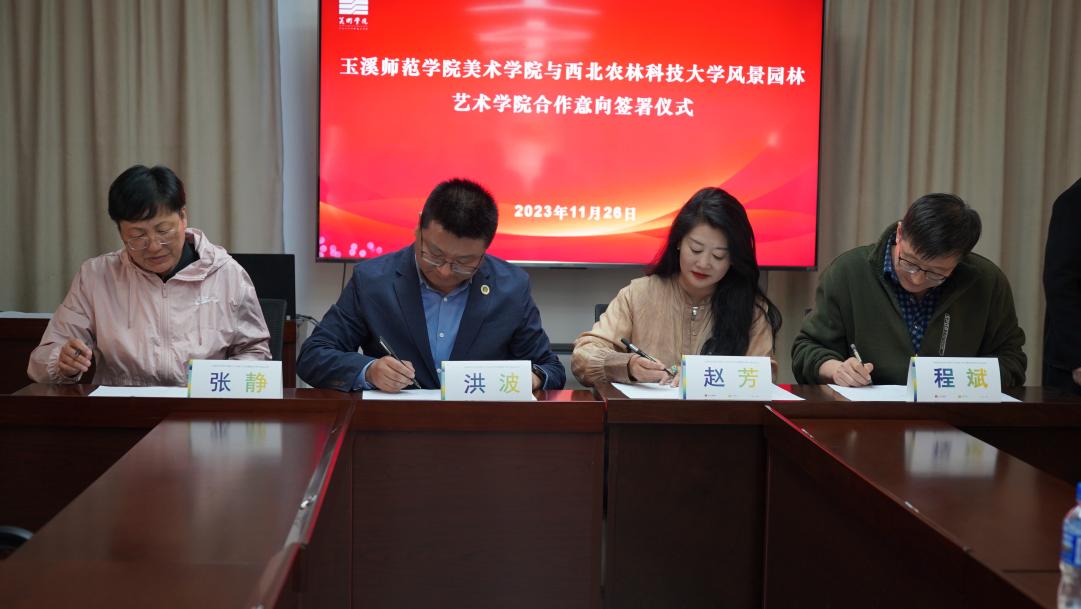 西北农林科技大学是教育部直属、国家“985、211工程”重点建设的高校,其中风景园林专博授权点更是我国云南、新疆、甘肃、陕西等西部省份唯一的该类别专博点。为推动西北农林科技大学帮扶玉溪师范学院,在艺术、风景园林等学科的强强联合、优势互补、共享共建。双方在师资队伍、专业人才培养、科技创新、社会服务、条件平台和管理体系等方面达成合作意向,并在参会人员的见证下签署了合作意向书。