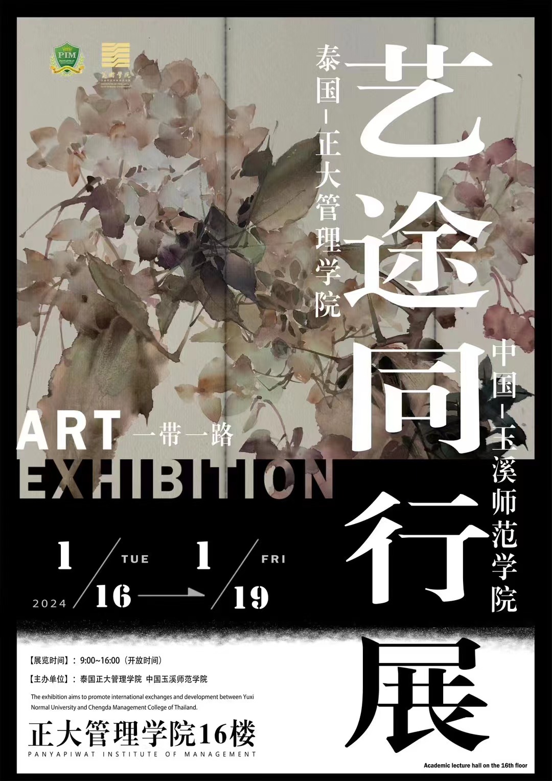2024年1 月16日,泰国正大管理学院与中国云南玉溪师范学院联合举办的“艺途同行·一带一路”跨国艺术交流展,成功在泰国正大管理学院举办。此次展览暨学术研讨以“艺途同行”为主题,旨在加强与“一带一路”沿线国家的文化交流,弘扬中华美育精神,推动云南高校国际化和高等教育共同进步。