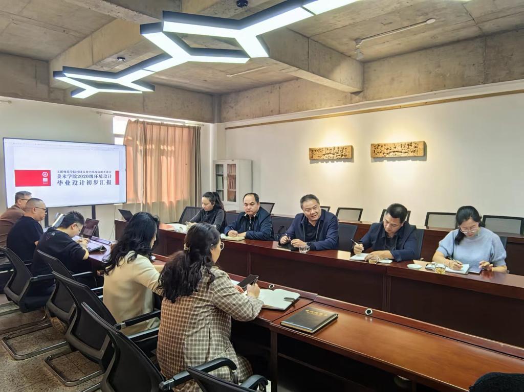 美术学院副院长王飚汇报了校园文化建设专项前期工作开展情况,并重点介绍了环境设计专业毕业设计结合学校景观、公共空间、艺术主题园区改造的初步构想;数字媒体专业负责人林义淋结合毕业设计,从学校文化宣传、视频、动画等作品创作推进情况进行了汇报;视觉传达专业负责人蔡金荣结合毕业设计创作,从学校品牌视觉识别设计(UIS)、导视系统、文创产品设计等方面进行了汇报。