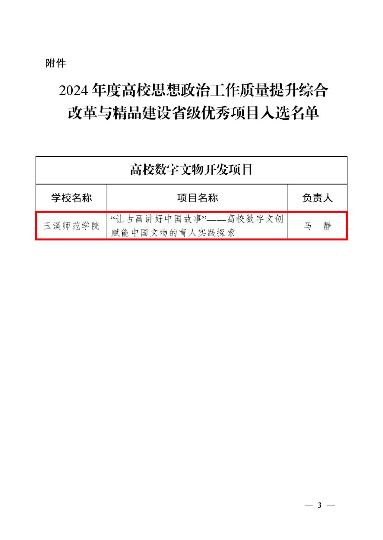 玉溪师范学院美术学院项目《“让古画讲好中国故事”——高校数字文创赋能中国文物的育人实践探索》入选云南省2024年度高校思想政治工作质量提升综合改革与精品建设省级优秀项目