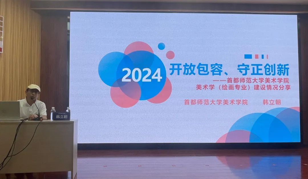 首都师范大学韩立朝教授从开放包容、守正创新的角度分享了美术学院美术学(绘画专业)的建设情况,首都师范大学注重学生人文素质培养,以文脉传承带动学科专业发展的经验为大家提供了传统与创新并重,社会服务与文化传承并举的新思路。
