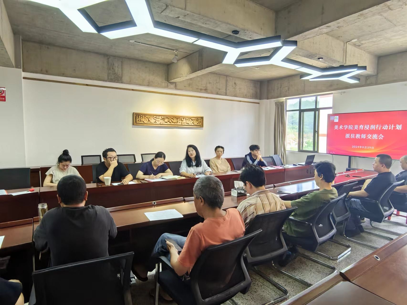 2024年8月29日下午,美术学院在三楼会议室召开“美育浸润行动计划”派驻教师交流会。会议由美术院长赵芳主持,学院党政班子及三批派驻西双版纳州勐海县、勐腊县开展美育浸润工作的教师参加了会议。
