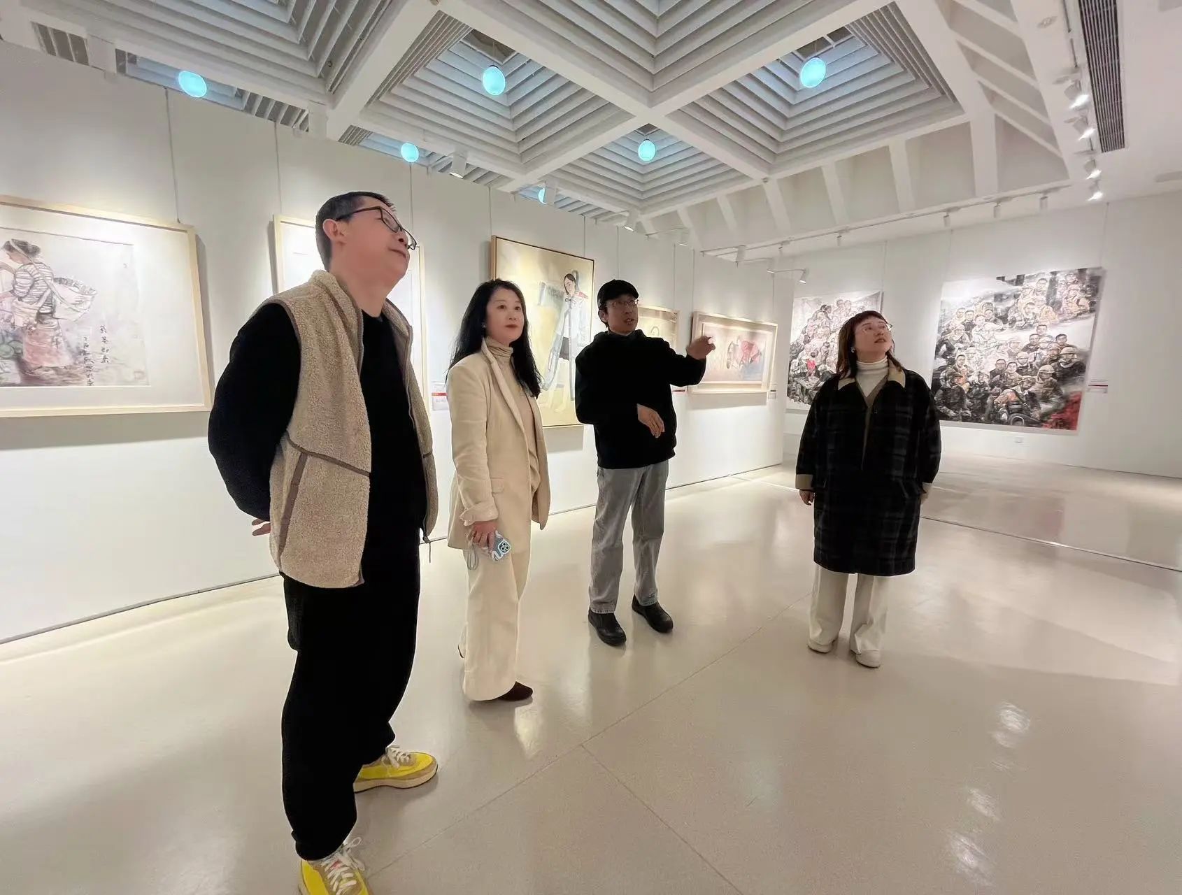 会后,首都师范大学美术学院院长王海滨带领大家参观了“首都师范大学建校70周年美术学院校友作品邀请展”。