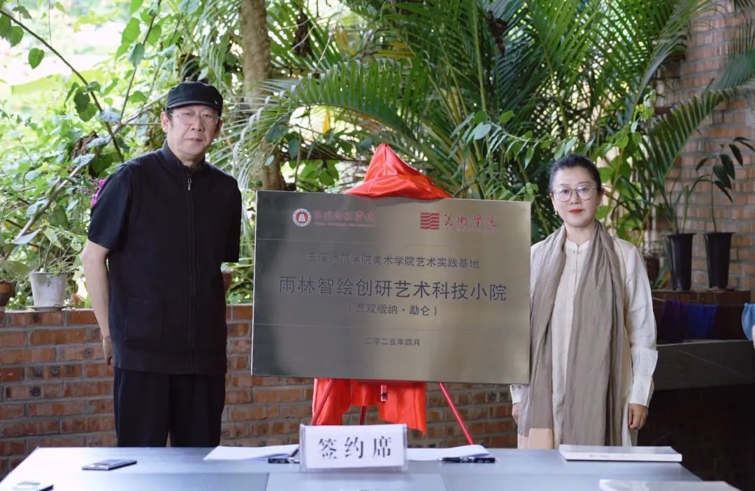 近日,玉溪师范学院“雨林智绘创研艺术科技小院(西双版纳·勐仑)”揭牌仪式在西双版纳州勐腊县勐仑美术馆隆重举行。出席仪式的有中央美术学院博士生导师、玉溪师范学院银龄教师李晓林教授,首都师范大学教授、勐仑美术馆馆长吉瑞森教授,广州美术学院中国画学院党委书记许敦平教授,云南省美术家协会副主席、玉溪师范学院美术学院名誉院长郭巍教授,以及中国科学院西双版纳热带植物园相关人员和美术学院的师生。仪式由美术学院许金副教授主持。