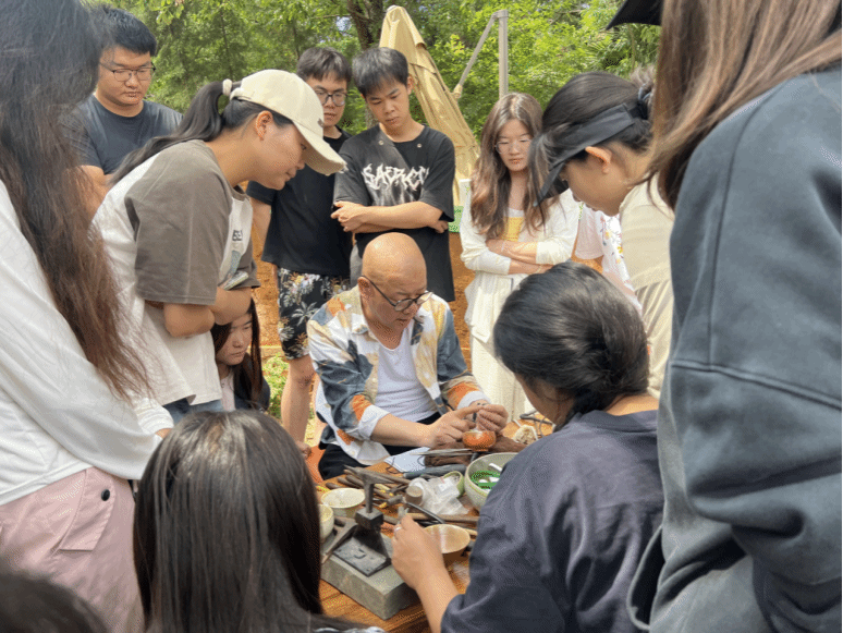 在玉溪华宁县冲麦村“民族民间工艺艺术科技小院”,师生深入传统村落,开展写生创作与非遗体验。国家级传统村落冲麦村的茶马古道、明清古建成为生动课堂,锔瓷金缮非遗传承人王海军指导学生将传统技艺融入现代设计。采风期间,师生完成百余幅写生作品并举办专题展览,用艺术语言讲述乡村振兴故事。