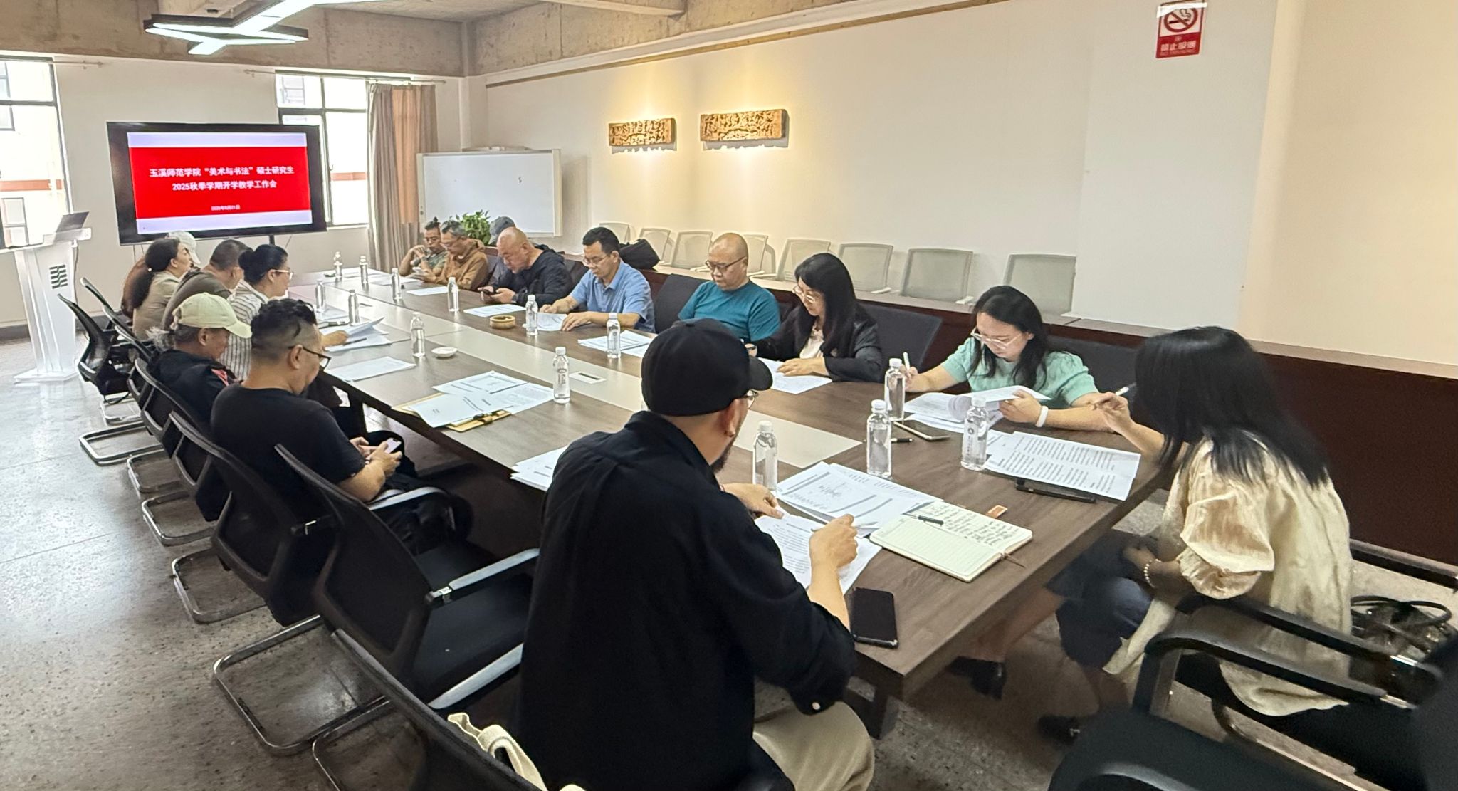2025年8月21日上午,玉溪师范学院“美术与书法”硕士研究生2025年秋季学期开学教学工作会在美术学院会议室顺利召开。会议由美术学院院长赵芳主持,学院相关领导、硕士点全体导师、以及开展相关研究生课程的教师参加了会议。会议围绕新学期的重点工作进行了全面规划和部署,确保研究生培养工作高质量有序推进。