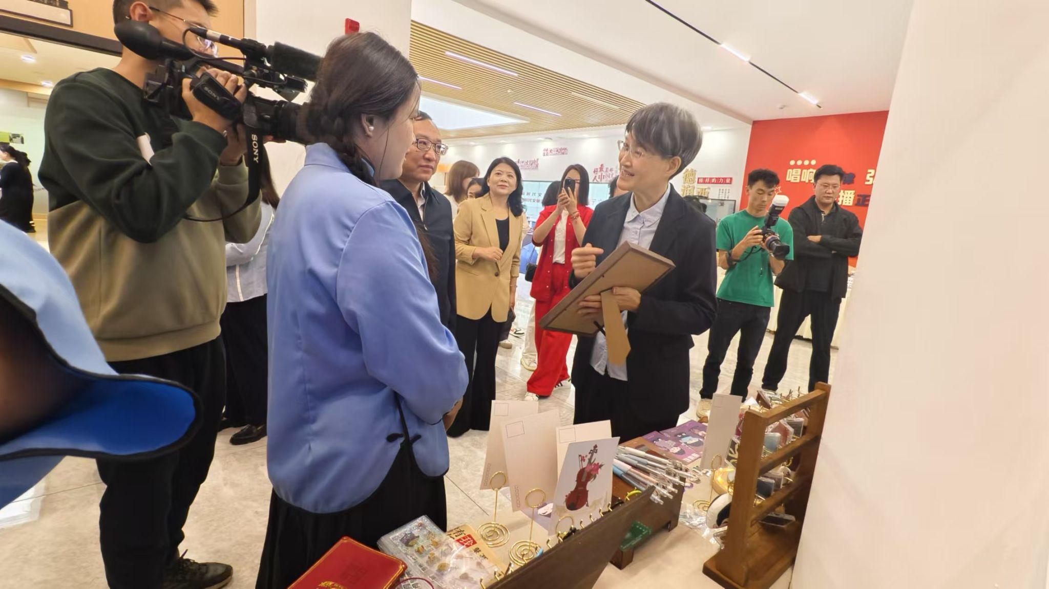 在体验AR聂耳明信片后,曾艳强调,要把握信息时代特征,促进数字技术与文化特色深度融合,以更便捷、现代的形式推动文化传播;在观看文创版画时,她说该作品实现了优秀传统文化与现代艺术表达的有机结合,既体现文化传承,又彰显时代创新。曾艳强调,“文创的核心在于‘文’,必须扎根文化底蕴、承载文化内涵。”她鼓励团队继续努力,创新信息化内容与形式,促进文化与大众生活的融合,让文创产品被更广泛的群体认可和喜爱,让高新技术更接地气、更易被群众理解和接纳。