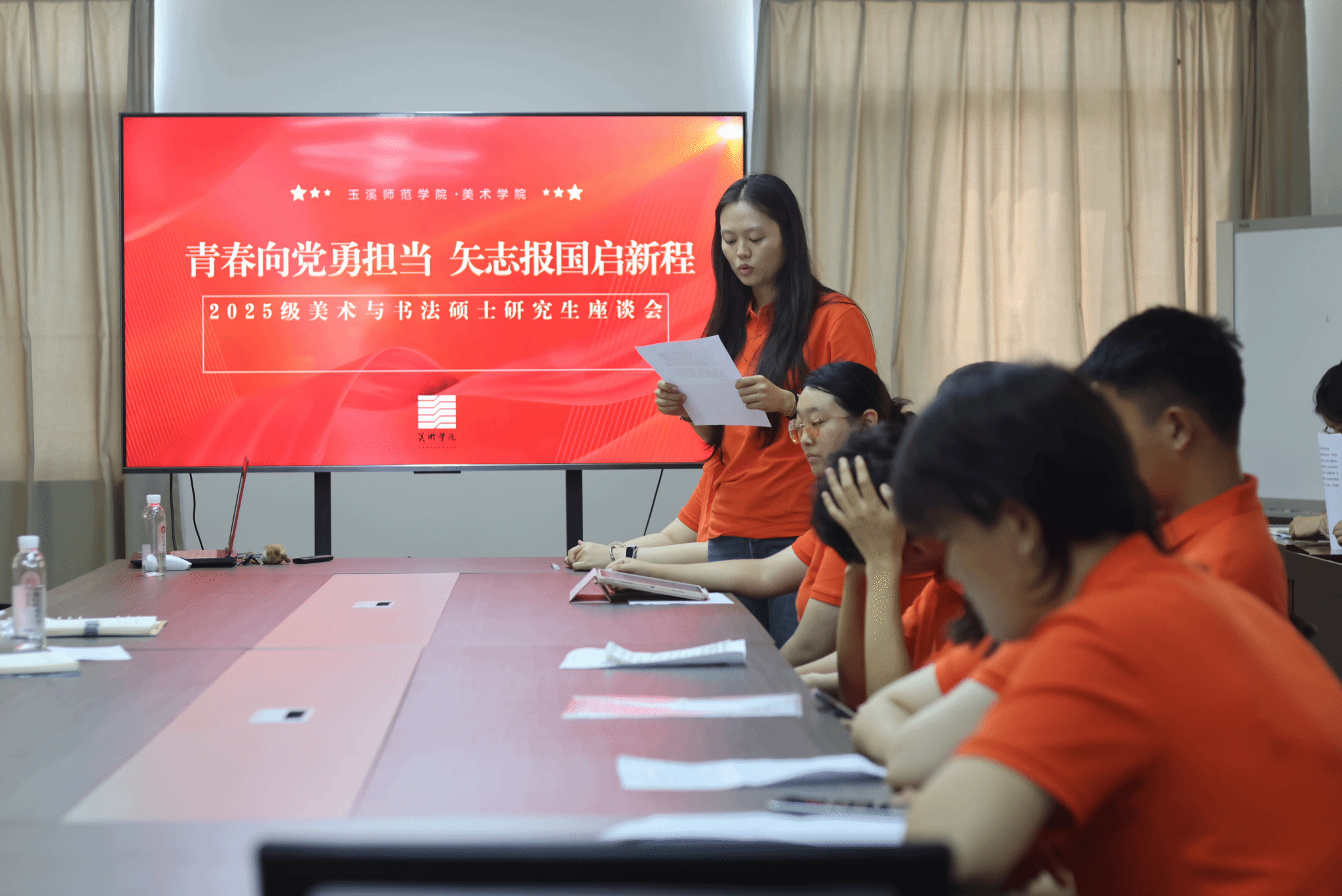 为隆重纪念中国人民抗日战争暨世界反法西斯战争胜利80周年,传承伟大抗战精神,激扬新时代青春力量,9月5日上午,玉溪师范学院美术学院组织召开“青春向党勇担当,矢志报国启新程”研究生主题座谈会。学院党政领导、硕士研究生导师以及2025级全体研究生共同参会。座谈会由学院党委副书记普通主持。