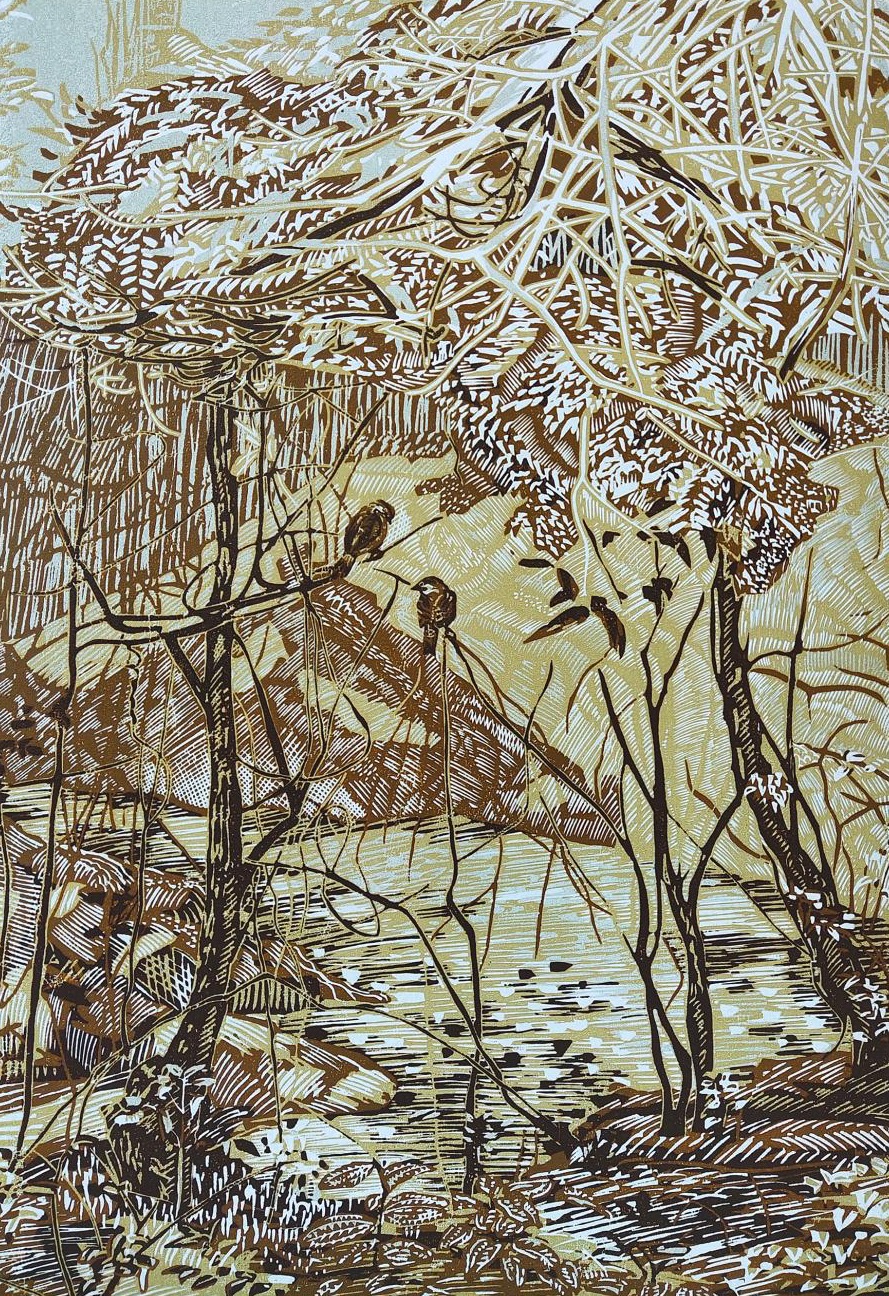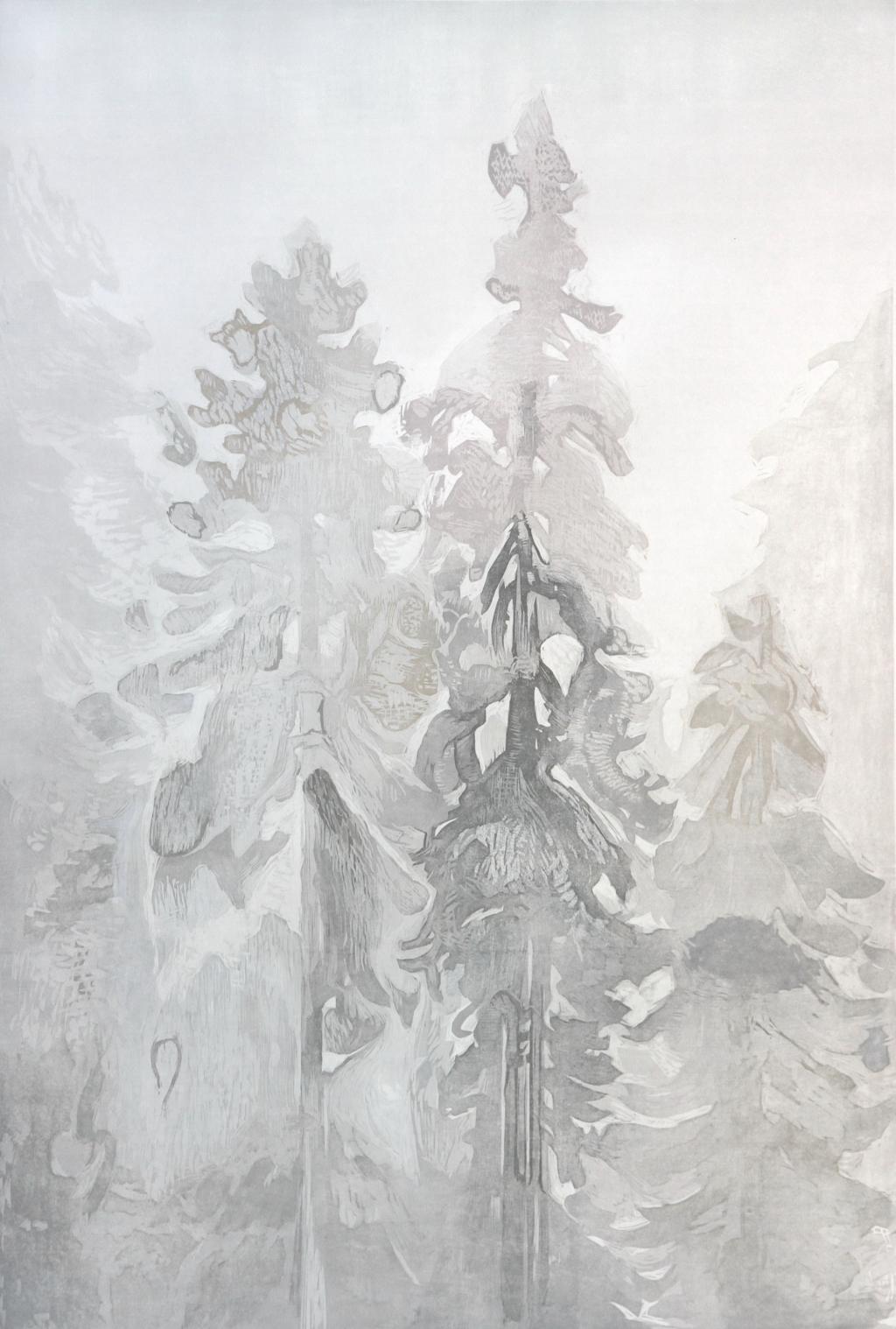 《谧林》 李宏斌,50x34cm,绝版木刻