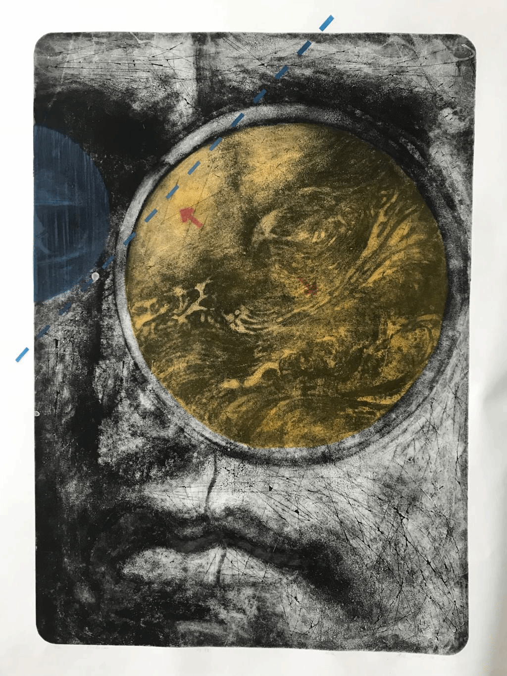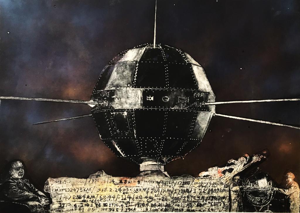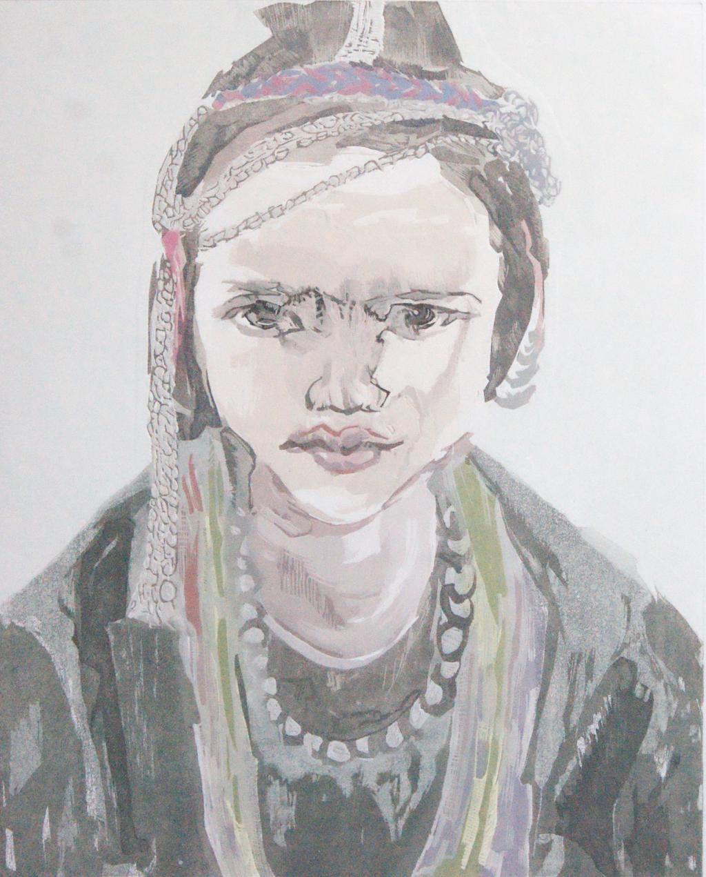 《聚在一起聊天的人们》李宏斌,65X86.7cm ,木板油印